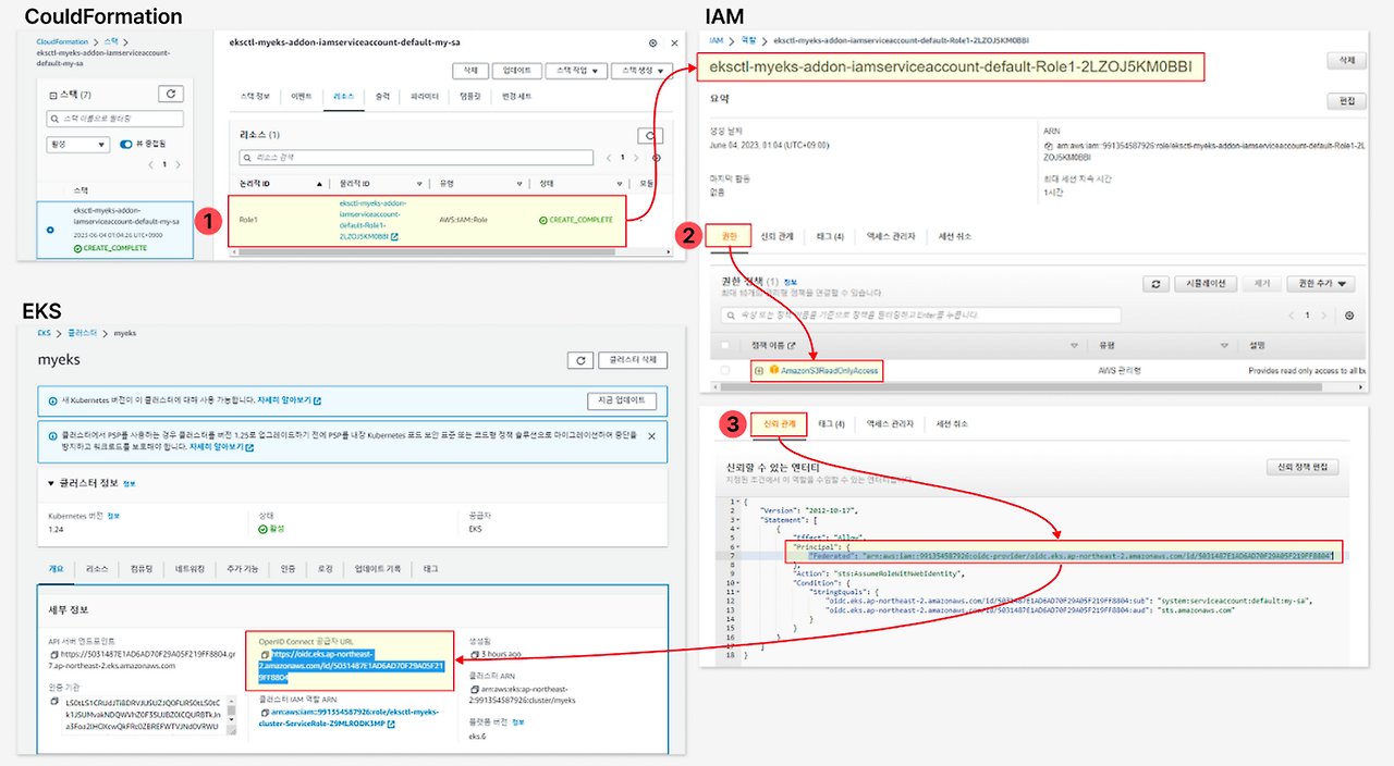 "Federated": "arn:aws:iam::911283464785:oidc-provider/oidc.eks.ap-northeast-2.amazonaws.com/id/F6A7523462E8E6CDADEE5D41DF2E71F6"